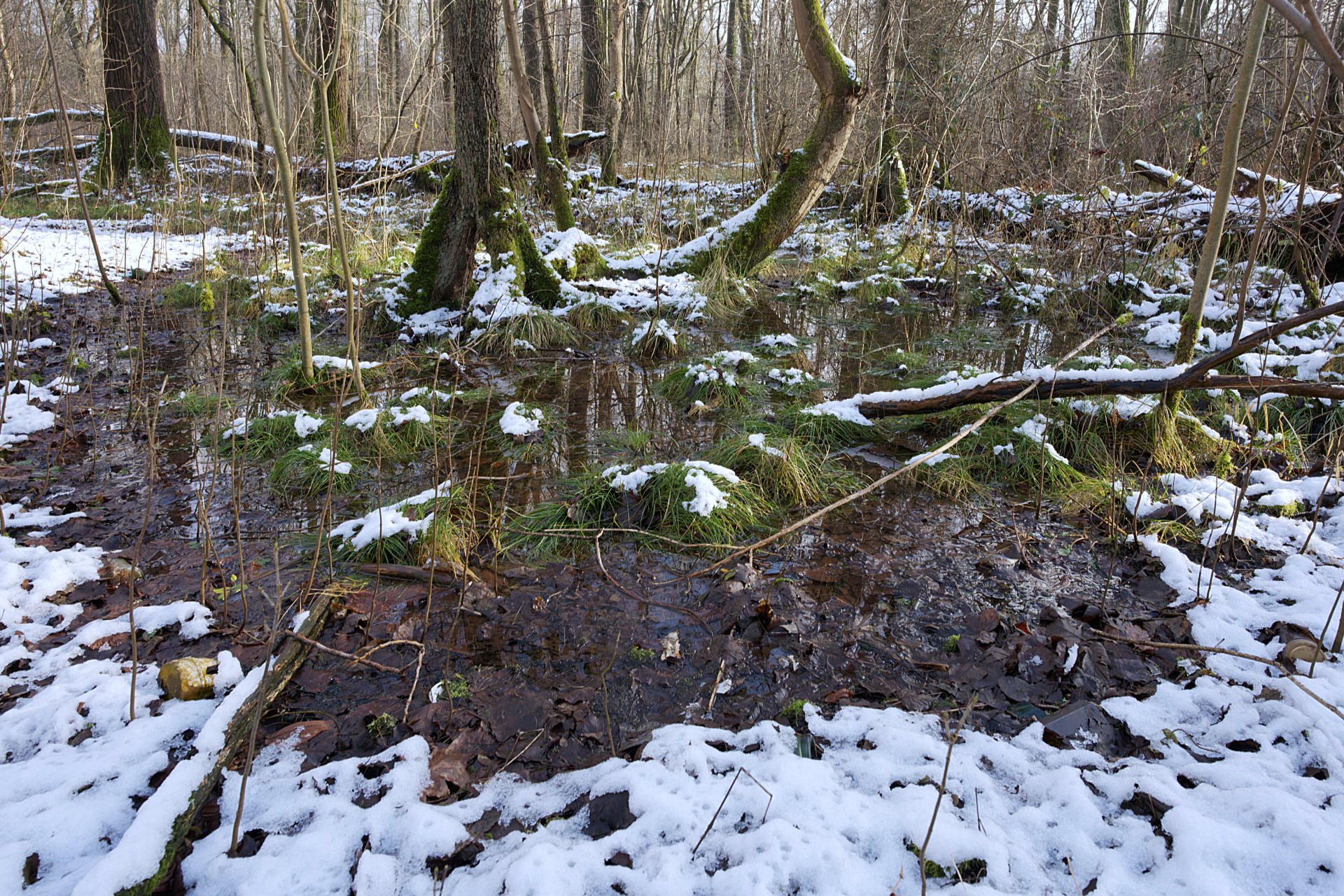 Erlenbruchwald am Rand der ehemaligen Hausmüll-Deponie Eller Forst, Düsseldorf