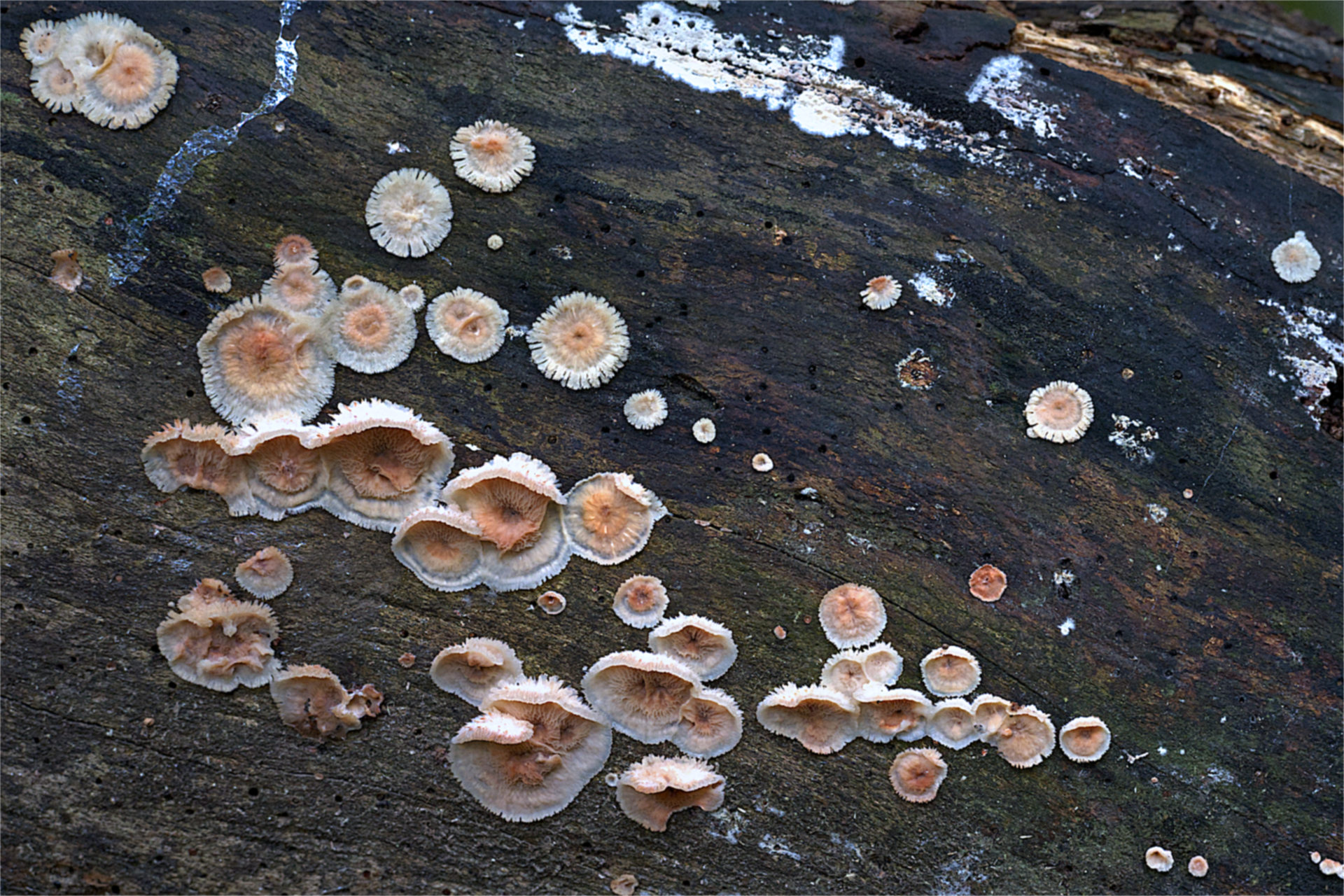 Phlebia ← Ersteller: Kai Yves LindenAufnahmedatum: 2025-10-19 11:51:50Aufnahmeort: Rotthäuser Bachtal, Düsseldorf (DE)Kamera: SONY ILCE-7M4Objektiv: Voigtlander NOKTON 50mm F1.2 AsphericalBrennweite: 50 (50 @ 35) mmBlende: f/5,6Verschlusszeit: 1/100 sEmpfindlichkeit: 3200 (ISO)K.Y.Linden (Alle Rechte vorbehalten) → Gallertfleischiger Fältling (Phlebia tremellosa), Rotthäuser Bachtal, Düsseldorf; Einzelaufnahme (Beschnitt -0,30)