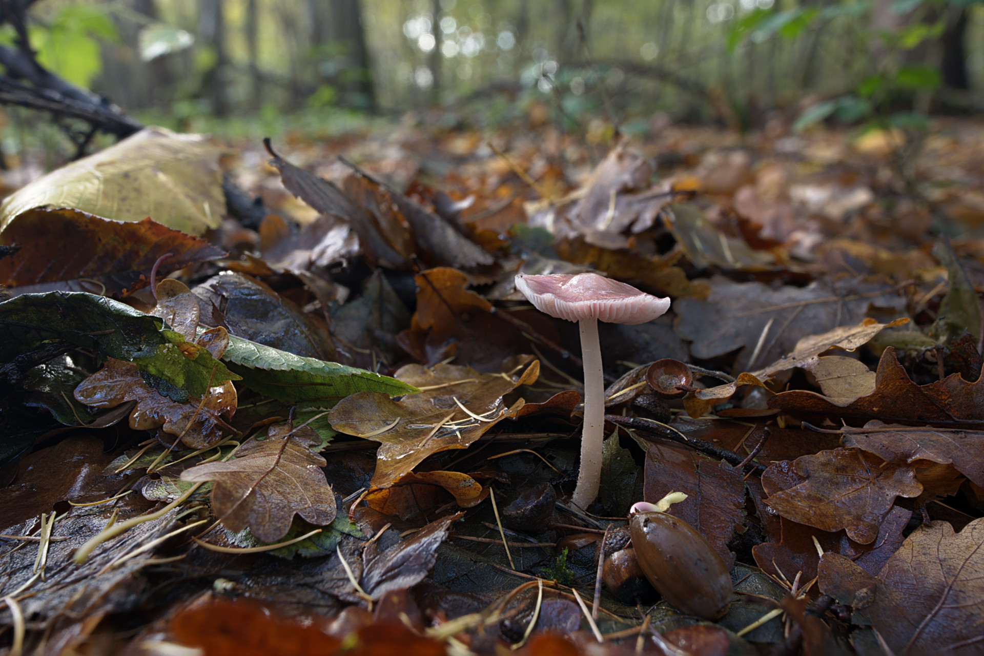 Rosa Rettich-Helmling (Mycena pura var. rosea), Eller Forst, Düsseldorf; gestapelter Fokus aus 12 Belichtungen (Beschnitt -0,13)