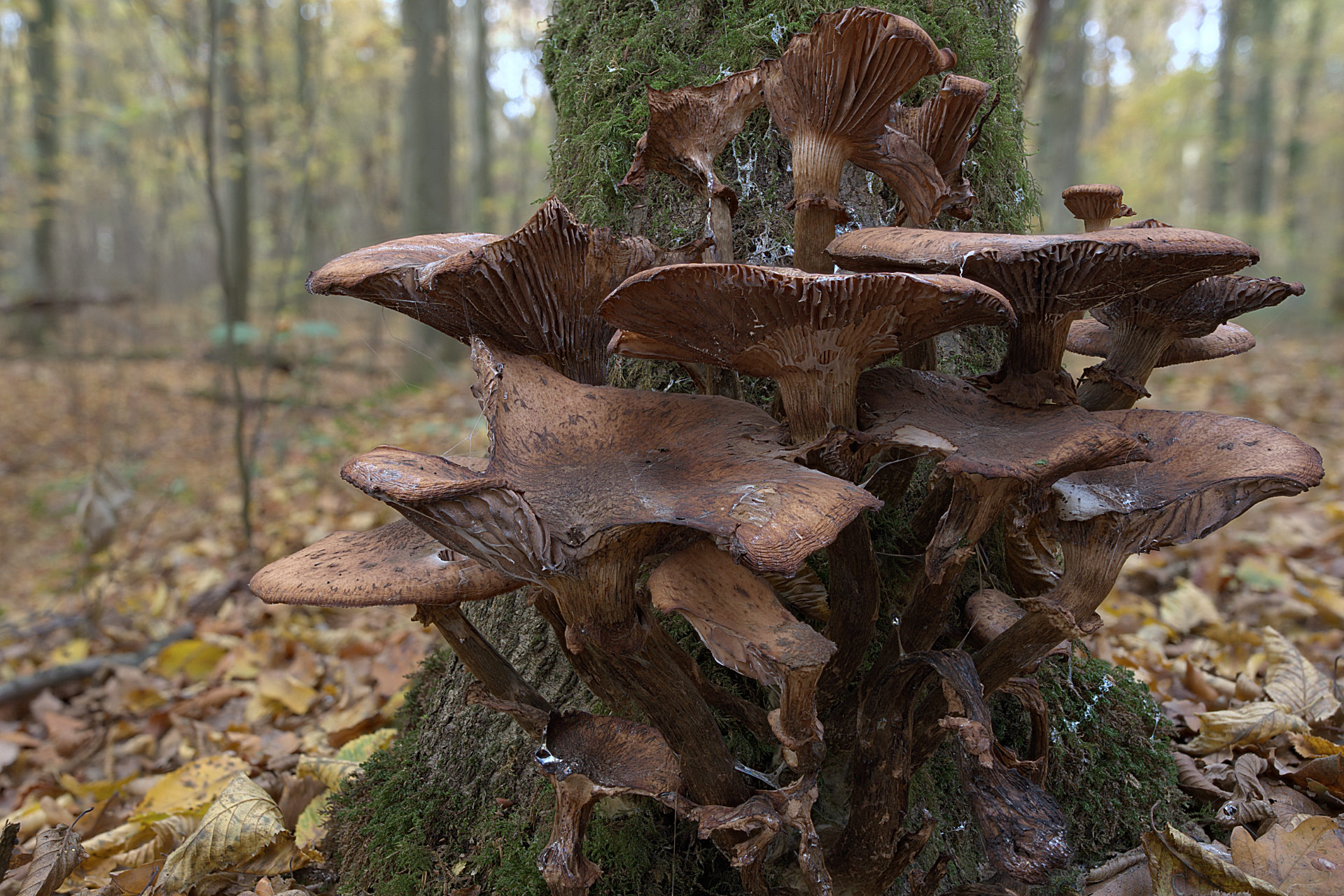 Armillaria ← Ersteller: Kai Yves LindenAufnahmedatum: 2025-11-06 12:40:59Aufnahmeort: Eller Forst, Düsseldorf (DE)Kamera: SONY ILCE-7M4Objektiv: FE 20mm F1.8 GBrennweite: 20 (20 @ 35) mmBlende: f/4,0Verschlusszeit: 1/40 sEmpfindlichkeit: 200 (ISO)K.Y.Linden (Alle Rechte vorbehalten) → Dunkle Hallimasch (Armillaria ostoyae), Eller Forst, Düsseldorf; gestapelter Fokus aus 28 Belichtungen (Beschnitt -0,30)
